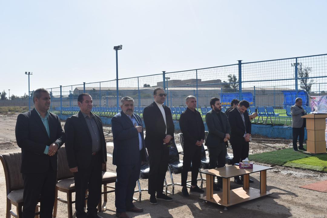 زمینی که با همت بچه های پشتیبانی و دستور اکید مدیر عامل محترم در راستای تلاش برای تحرک و سلامتی کارکنانِ مجموعه روند ان اغاز گشت و اکنون با حضور رسمی مدیر عامل محترم پایساز جناب اقای دکتر عادلی مقدم و با حضور ستاره بی بدیل فوتبال کشور جناب اقای «عبدالله ویسی » که در همین خطه یعنی خوزستان زیبا جام قهرمانی بالای سر برده بود و خود از فرزندان همین دیار است افتتاح گردید .
